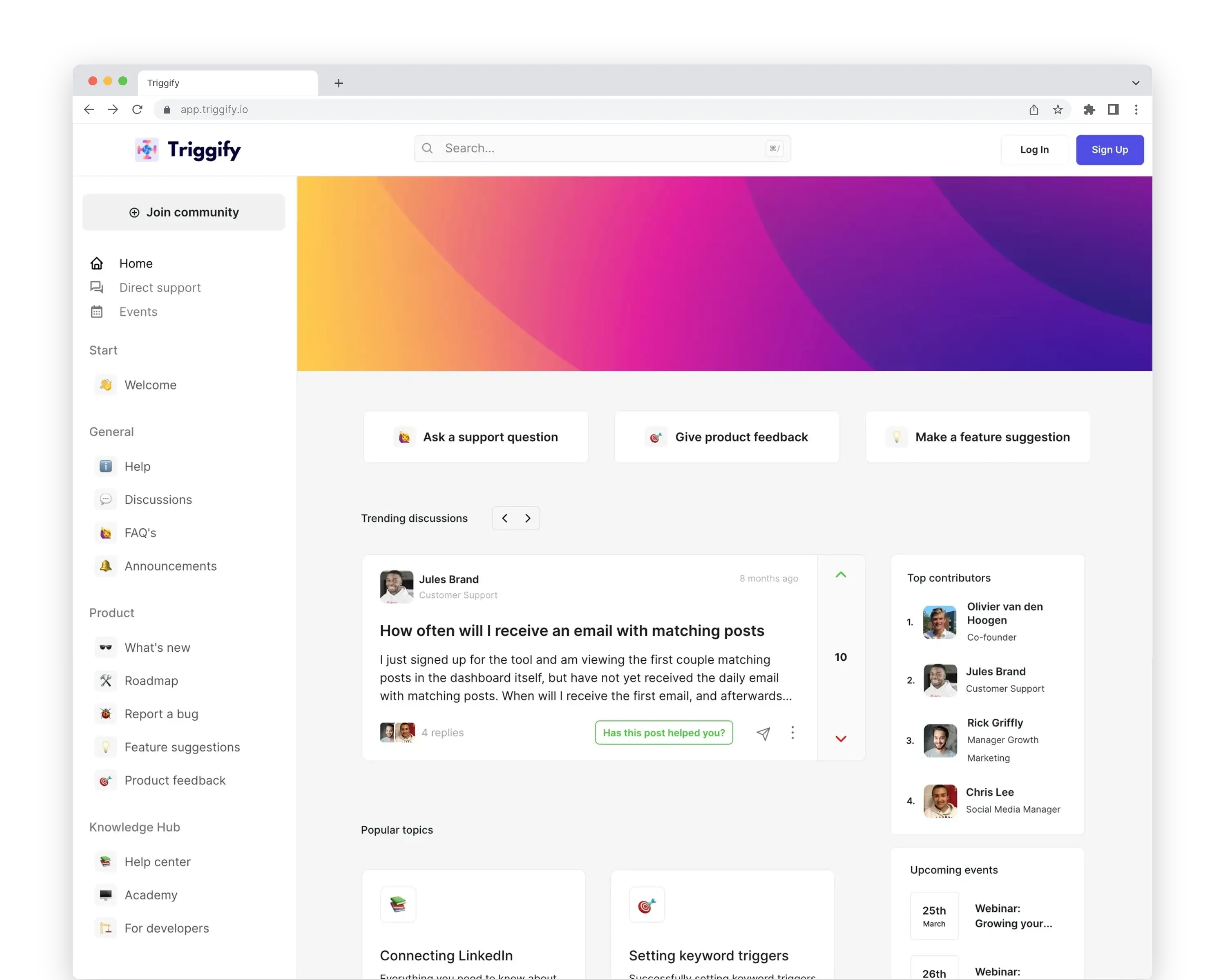 Because of this general approach, Tribe is missing core functionalities that boost customer community usage and activity for SaaS and software companies specifically. It is missing community business impact analytics, a thread system where you can directly comment on a comment, which makes it difficult to understand if a comment is a new comment or if the comment is a reply to a previous comment, the ability to host your technical documentation and the functionality to natively host your help desk (direct support) channels.