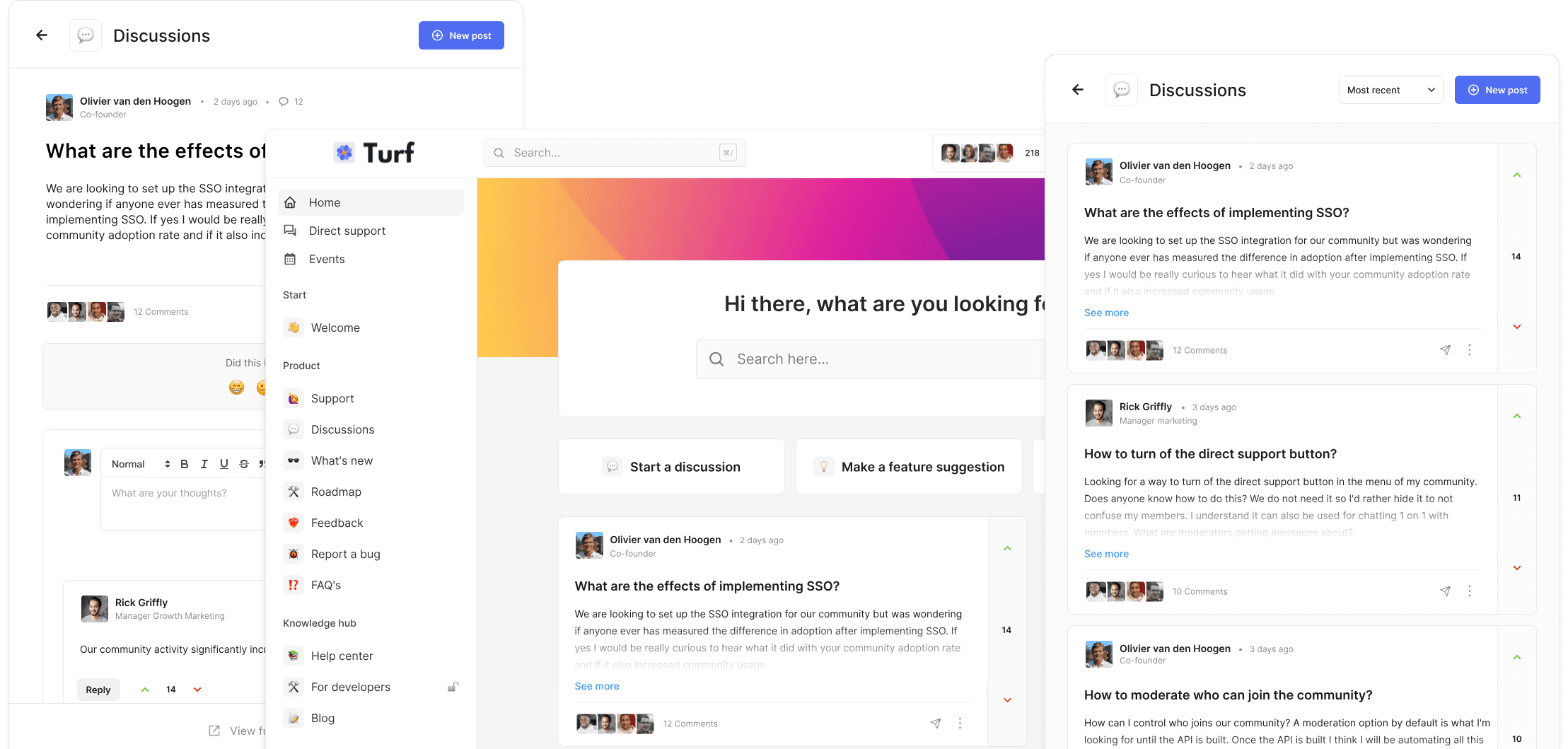 If you're a SaaS company, consider building your customer community environment with Turf. Turf allows you to embed the community environment inside your product, so your users can directly participate on the customer forums without leaving your product. In the end, your users want to participate in your community environment most when they are using your product in real time or when they have just used it. If this sounds cool you can also directly book a demo here.