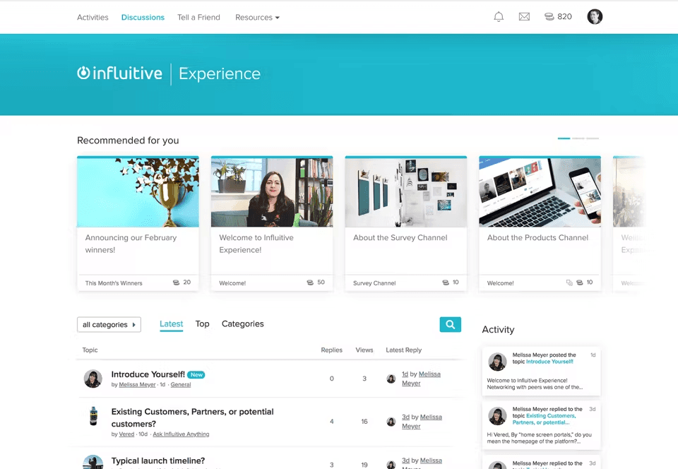 Influitive has two different subscription plans and does not offer a free trial. The 'Customer advocacy' plan starts at 24,000 USD per year but does not include the community forum discussion functionality that we are looking for in this review. That leaves us with the 'Digital community' plan that starts at 42,000 USD per year. This plan comes with all the functionality described in this review and is the only available plan for the community forum functionality. This makes Influitive one of the more expensive community platforms. You will have to talk to their sales team to be able to start, but for 42,000 USD per year, you might want to be in close contact with them.